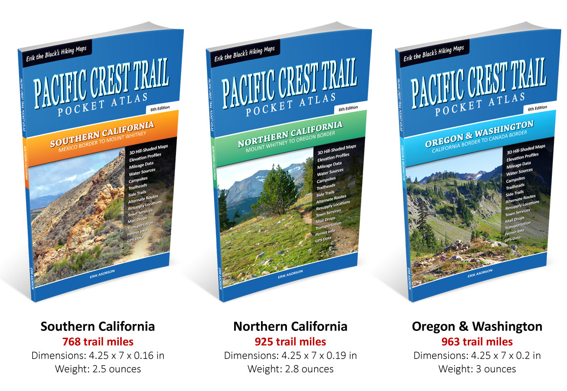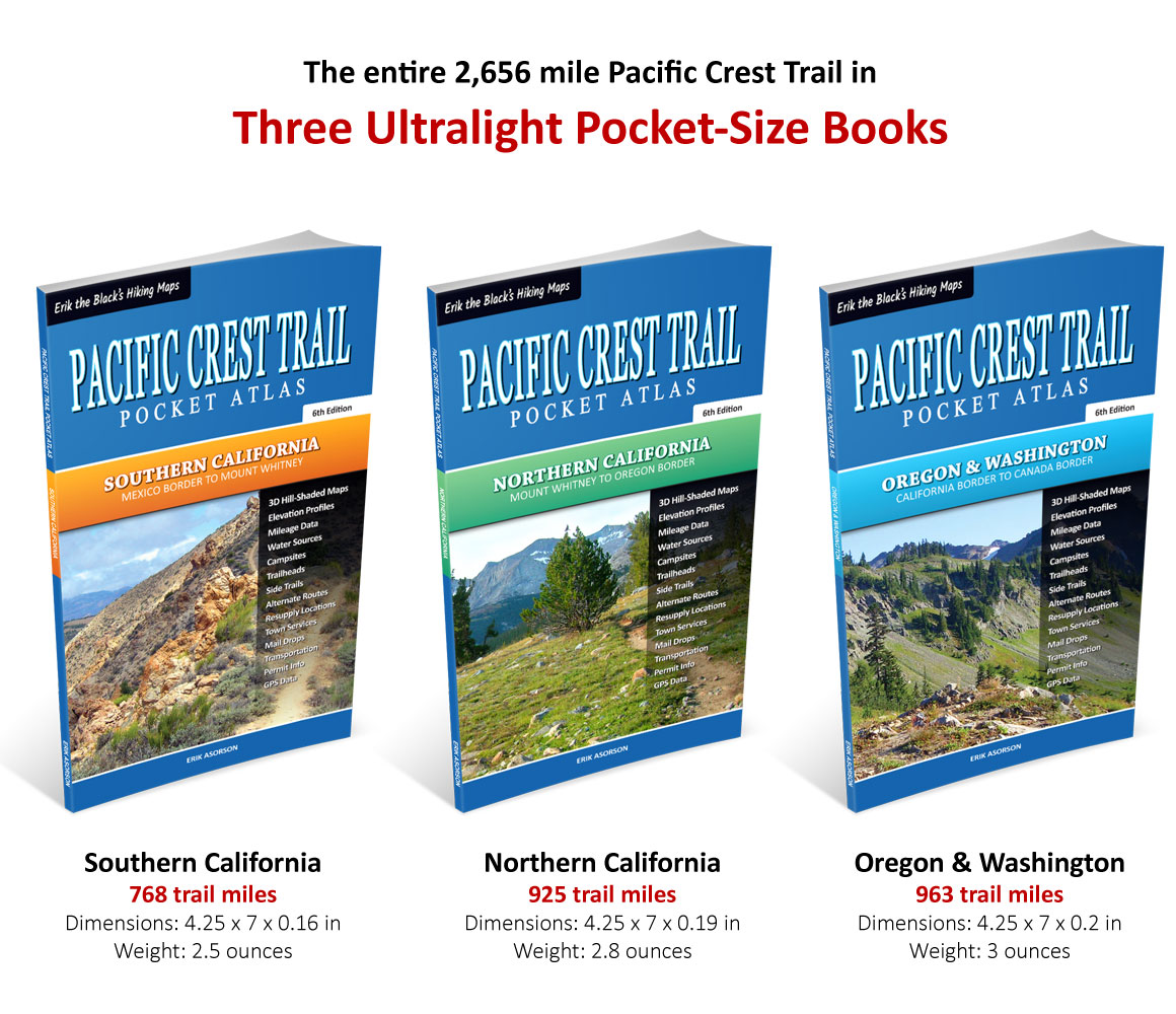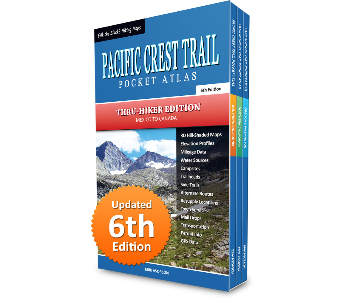 Pacific Crest Trail Pocket Atlases includes overview maps, section data for all twenty-nine sections of the trail, resupply locations, post offices, maildrops, transportation, town services, permit info, GPS data and more.