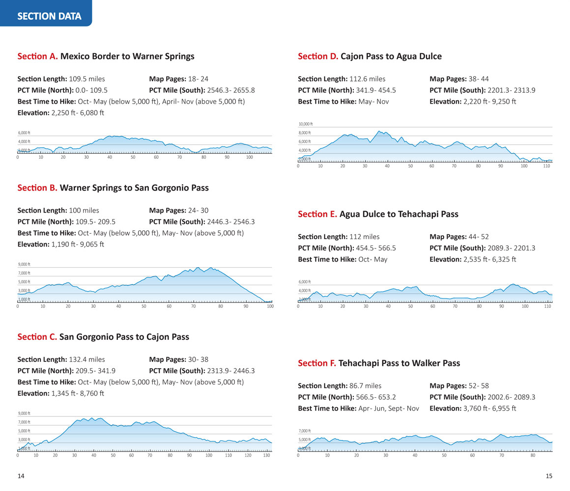 - Mileage and Elevation Data: Including northbound and southbound mileage and detailed elevation profiles