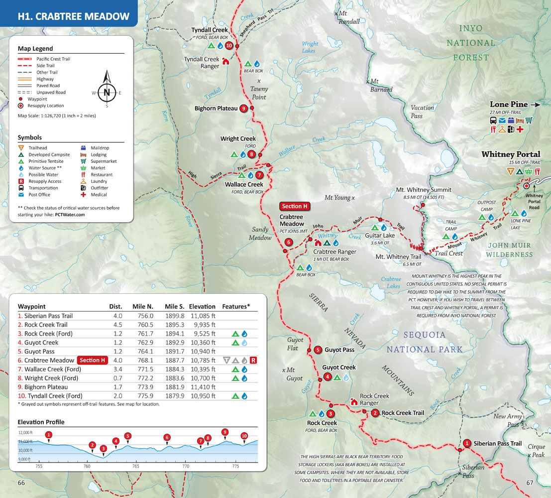 Pacific Crest Trail Pocket Atlas includes detailed maps and trail data for 925 miles of Pacific Crest Trail from Mount Whitney to the Oregon Border. Maps include mileage and elevation data, side trails and alternate routes, water sources, campsites, trailheads and other points of interest. Plus section data, resupply locations, post offices, maildrops, transportation, permit info, GPS data and more.