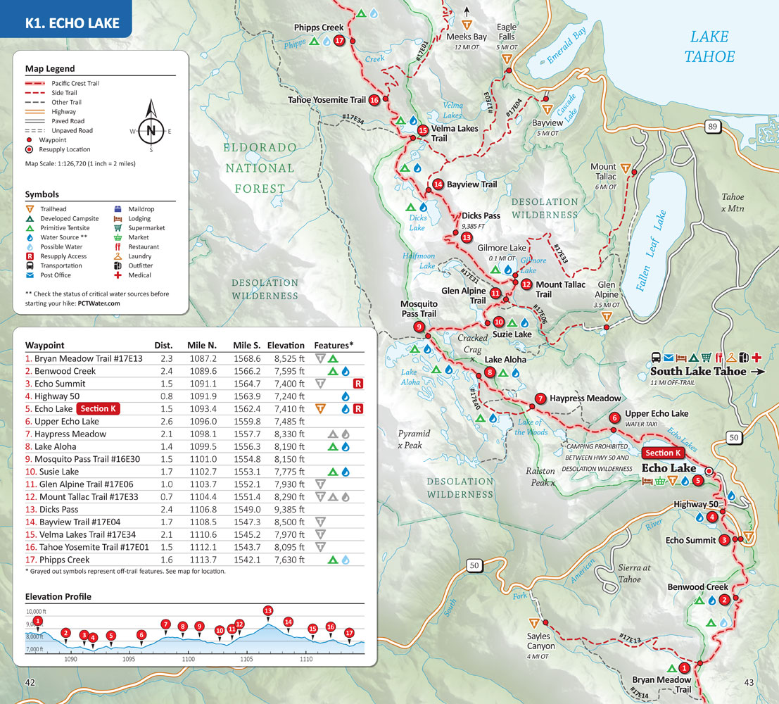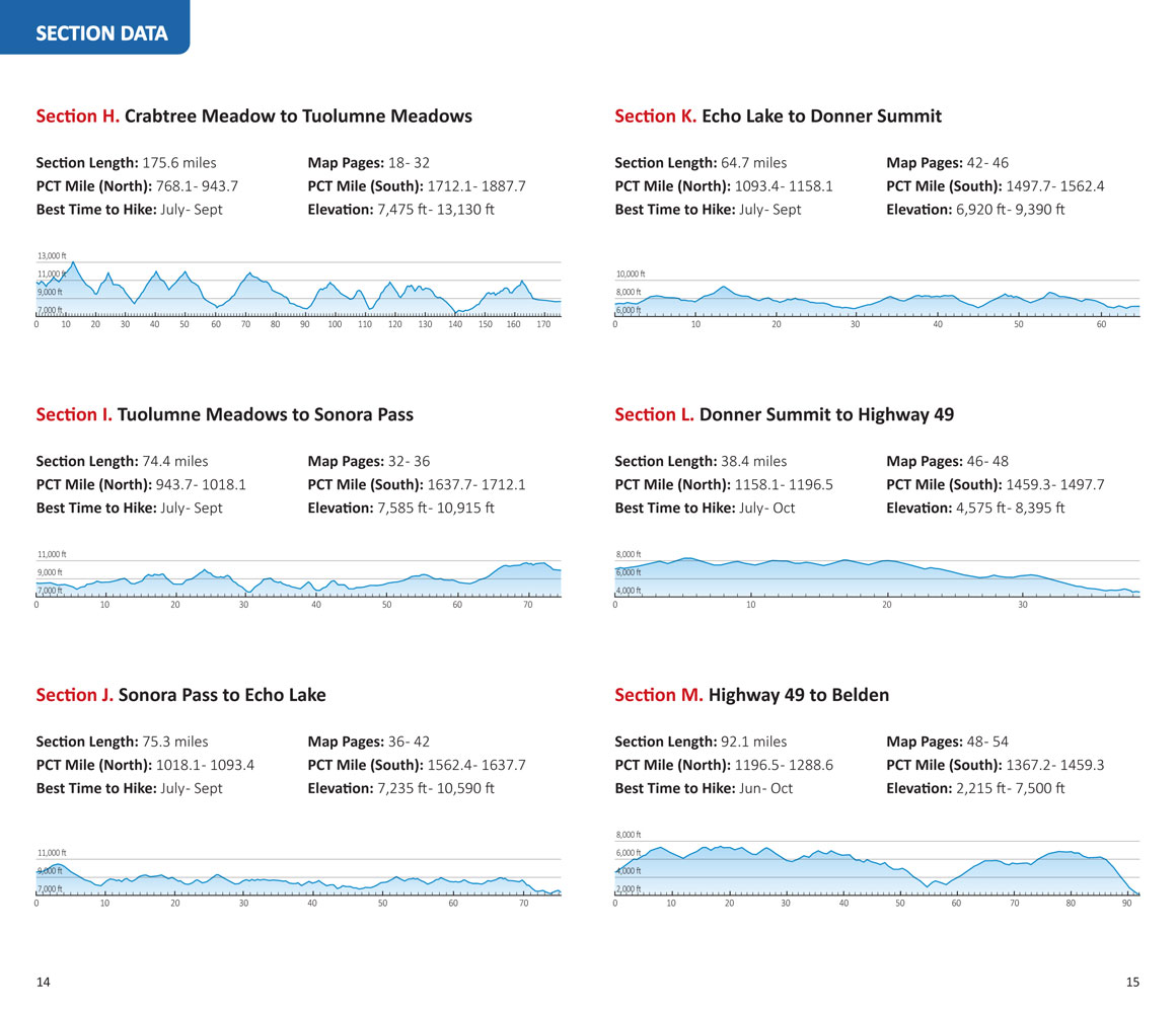- Mileage and Elevation Data: Including northbound and southbound mileage and detailed elevation profiles